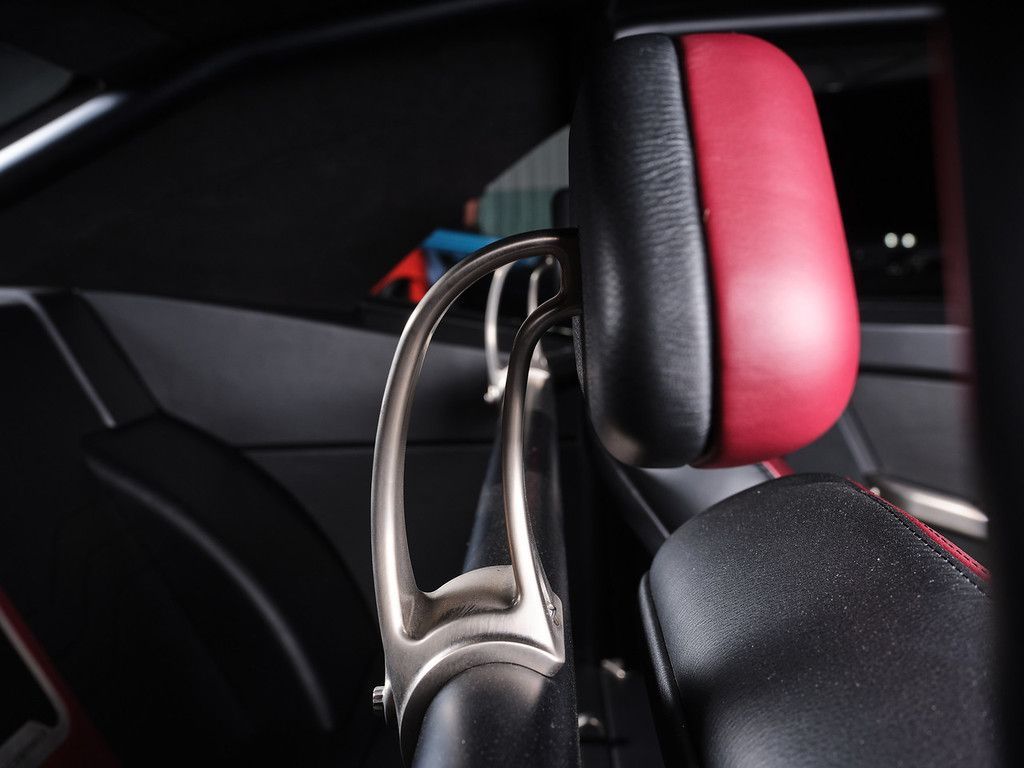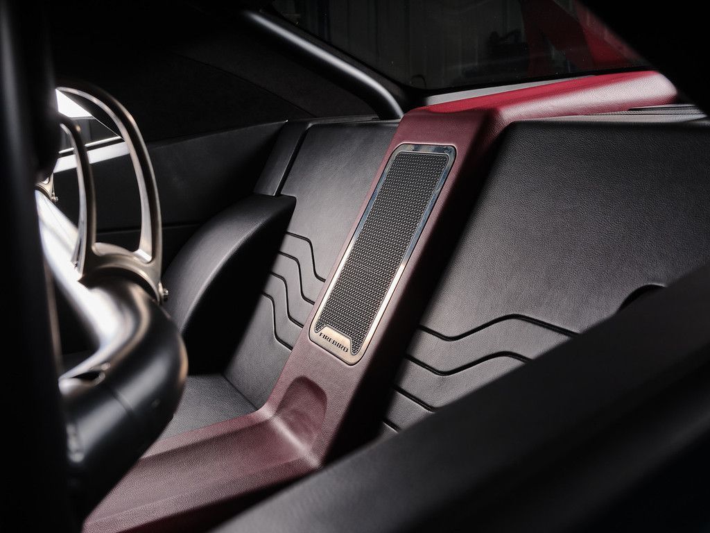 To address drivability and function we used a Roadster Shop Fast Track IRS Chassis, Wilwood Brakes and a tough as nails, Rockland RS T56 transmission. To make sure it's one-of-a-kind, we performed extensive body mods with our signature attention to design detail and metalwork as well as hunkering it all over a set of one off, custom wheels. And, for what might just be the most important part- staying true to its roots- we powered it with honest-to-goodness Poncho Power, built and twin turbocharged by Butler Performance, one of the best known names in big Pontiac Power. Inside, we created a purpose-built, but sumptuously appointed interior that features an ESP Spares/BBT gauge cluster, BBT designed and machined HVAC controls, shifter handle and door pulls as well as custom formed door sills, rear seat enclosure and integrated roll bar that contrasts against beautifully stitched seats with red leather seating surfaces and simple black carpet with machined floor mats.