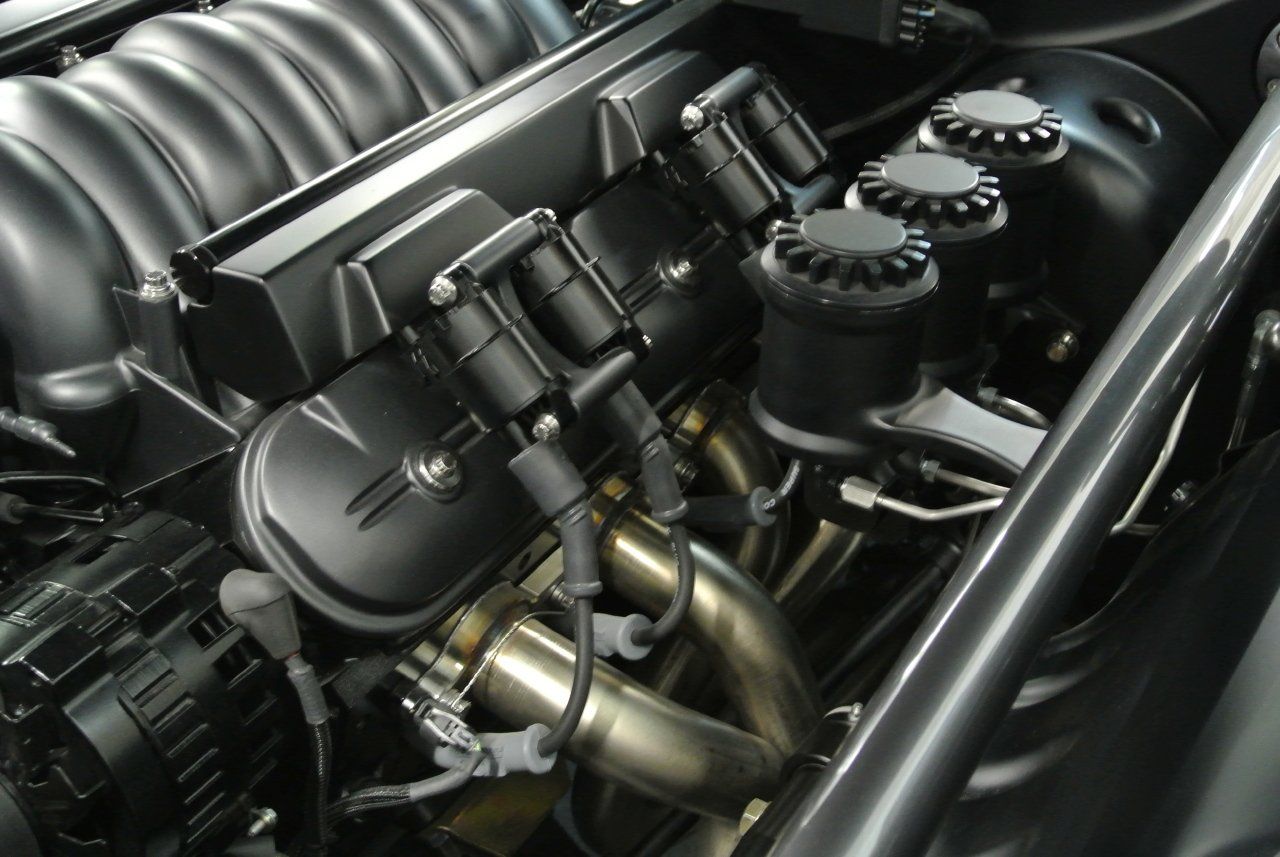 To make this Firebird an incredible road car, we used a Detroit Speed and Engineering sub-frame that features big brakes, coil-over shocks and SLA underpinnings with optimized suspension geometry. Then we nestled an LS3, Mast Motorsports-massaged engine between the frame rails and hooked it to a Tremec 6-Speed. Inside, we hand-formed every interior panel from aluminum, from the dash to the roof skin, before covering it all in hand-stitched Italian Leather. We tied it all together with a hand-formed, hidden roll cage system that got the leather treatment too. Outside, we retained the classic Firebird lines and accentuated them with road-race styling cues including aluminum side skirts, a rear air diffuser, molded in trunk spoiler and a dramatically altered front end that features a custom chin spoiler, mesh grill inserts and '11 Dodge Charger headlights.