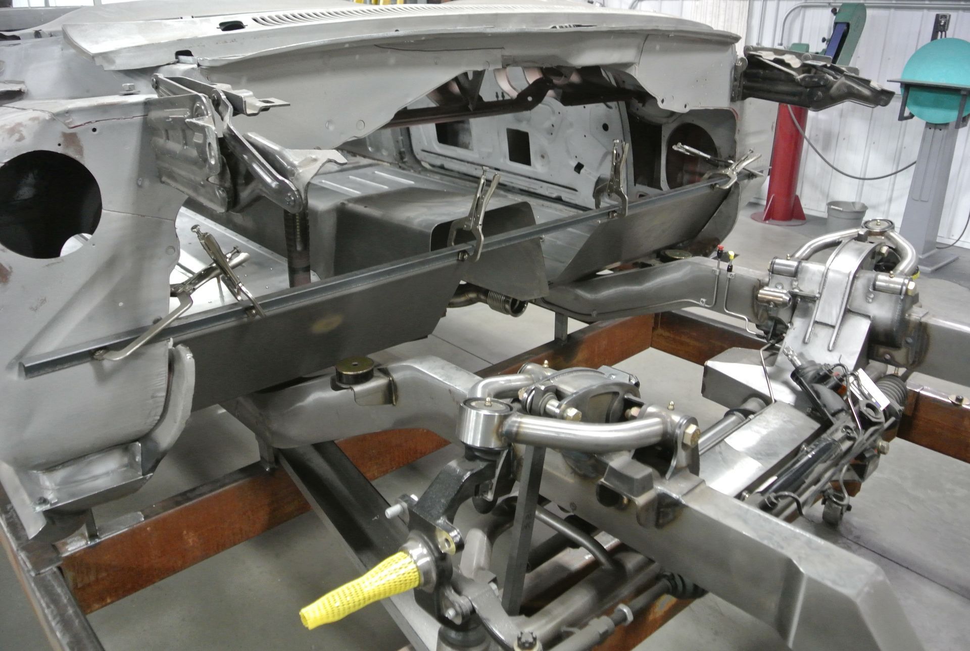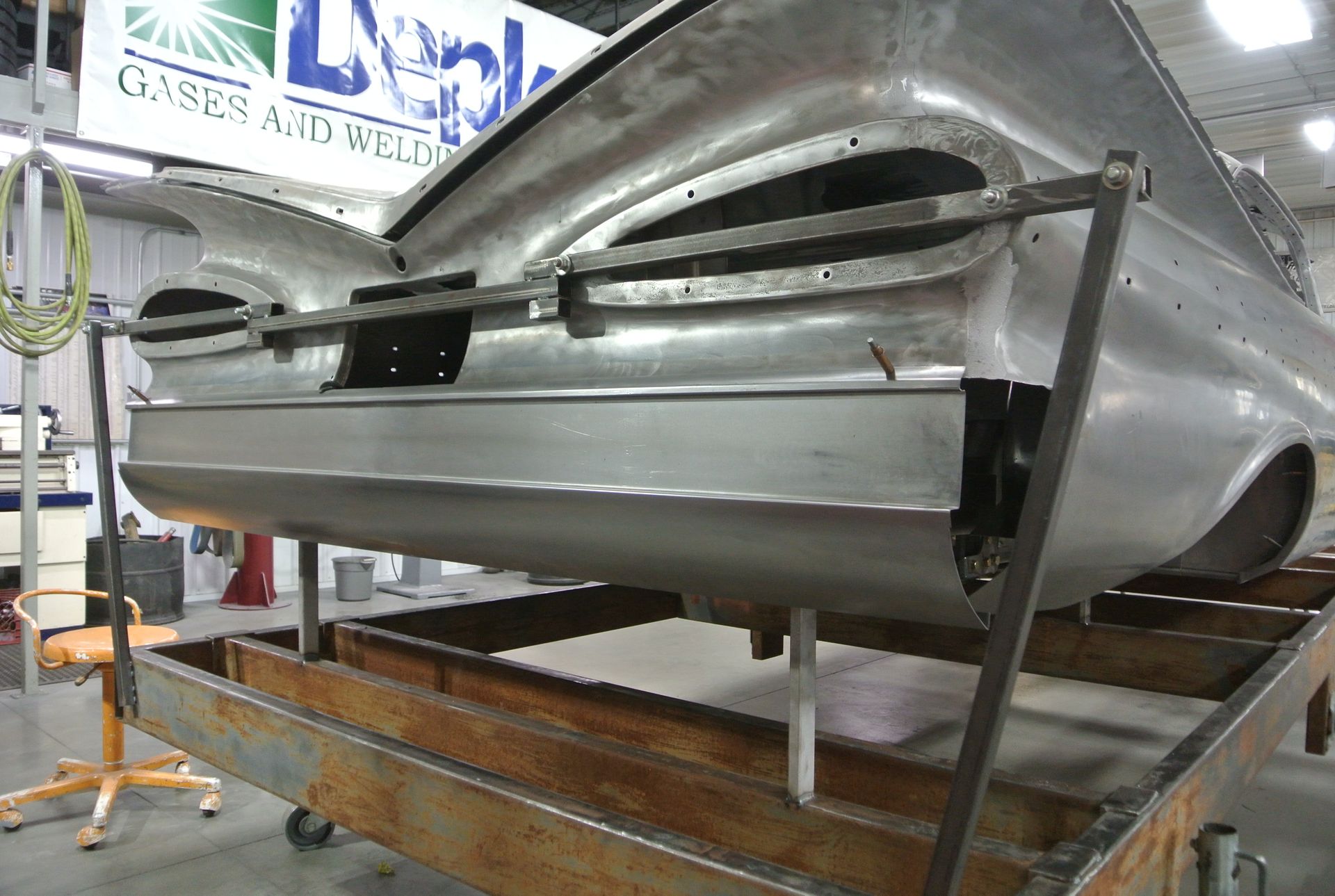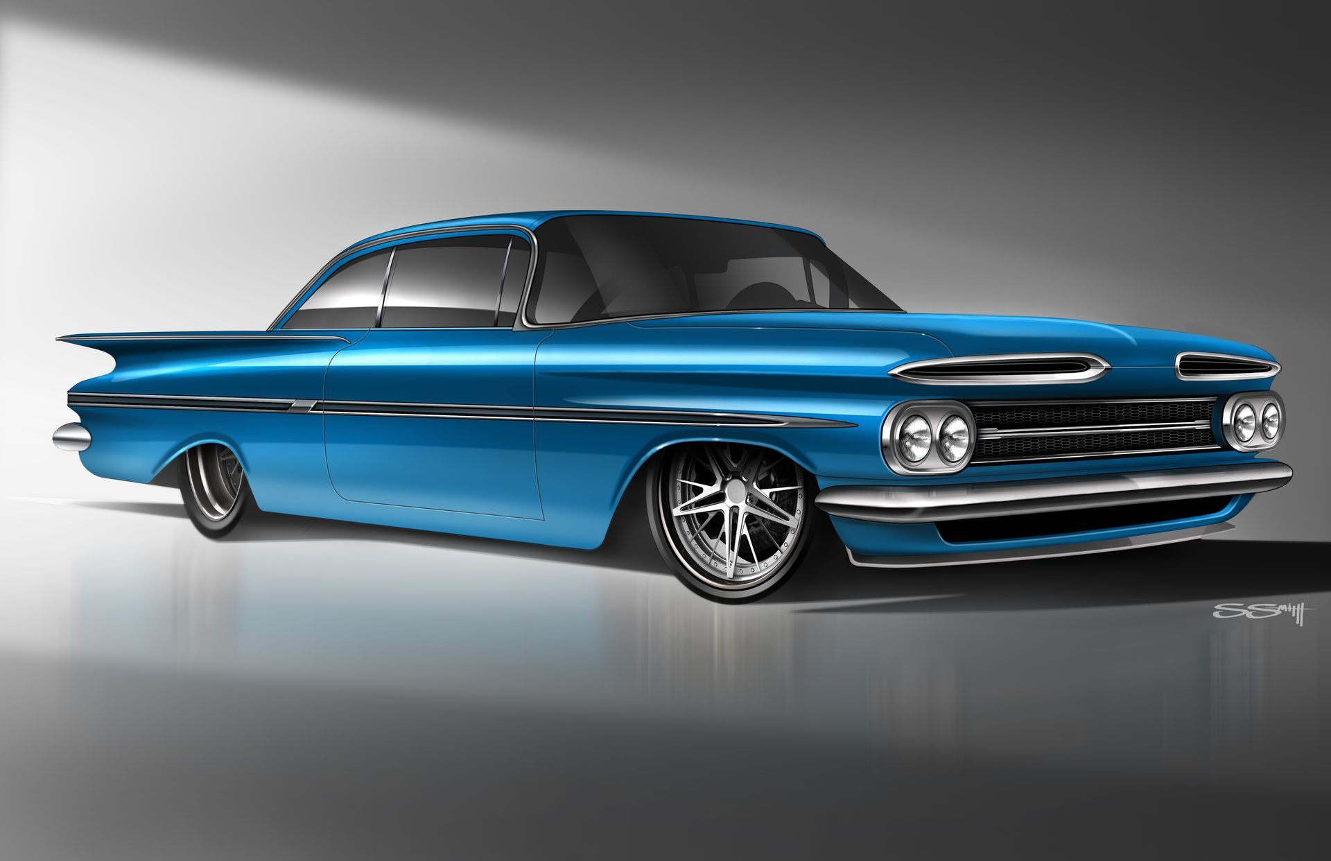 As much as Eugene loves classic looks, he wanted the cruising comfort and convenience of modern running gear, so the '59 rides on a Roadster Shop REVO chassis with Little MFG 16" 6 piston brakes all around and one-off Forgeline Wheels, 20's up front with 21's bringing up the rear. For power, the Impala gets a BBT-built LT1 that breathes through a hand-built stainless steel exhaust and is mated to a GM 8speed automatic. Inside, custom aluminum door panels and trim replace the factory stuff and one-of-a-kind machined pieces fill-in for original switches, knobs and more. Our man Phil Cato is handling upholstery, covering the custom-made seat frames. As for the body, what do you do to make the sexist car ever built even sexier? You'll see.