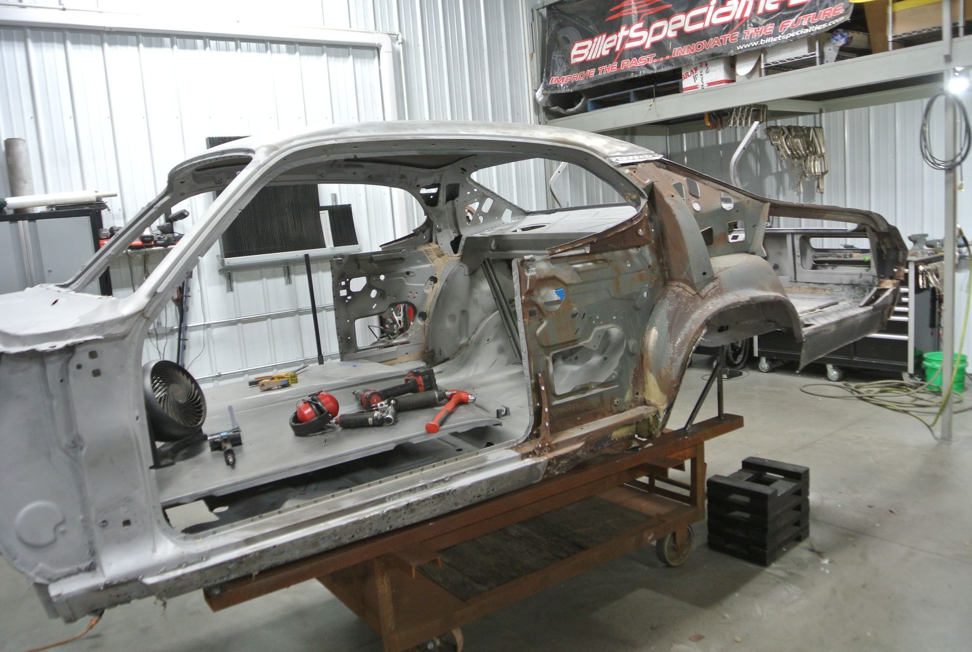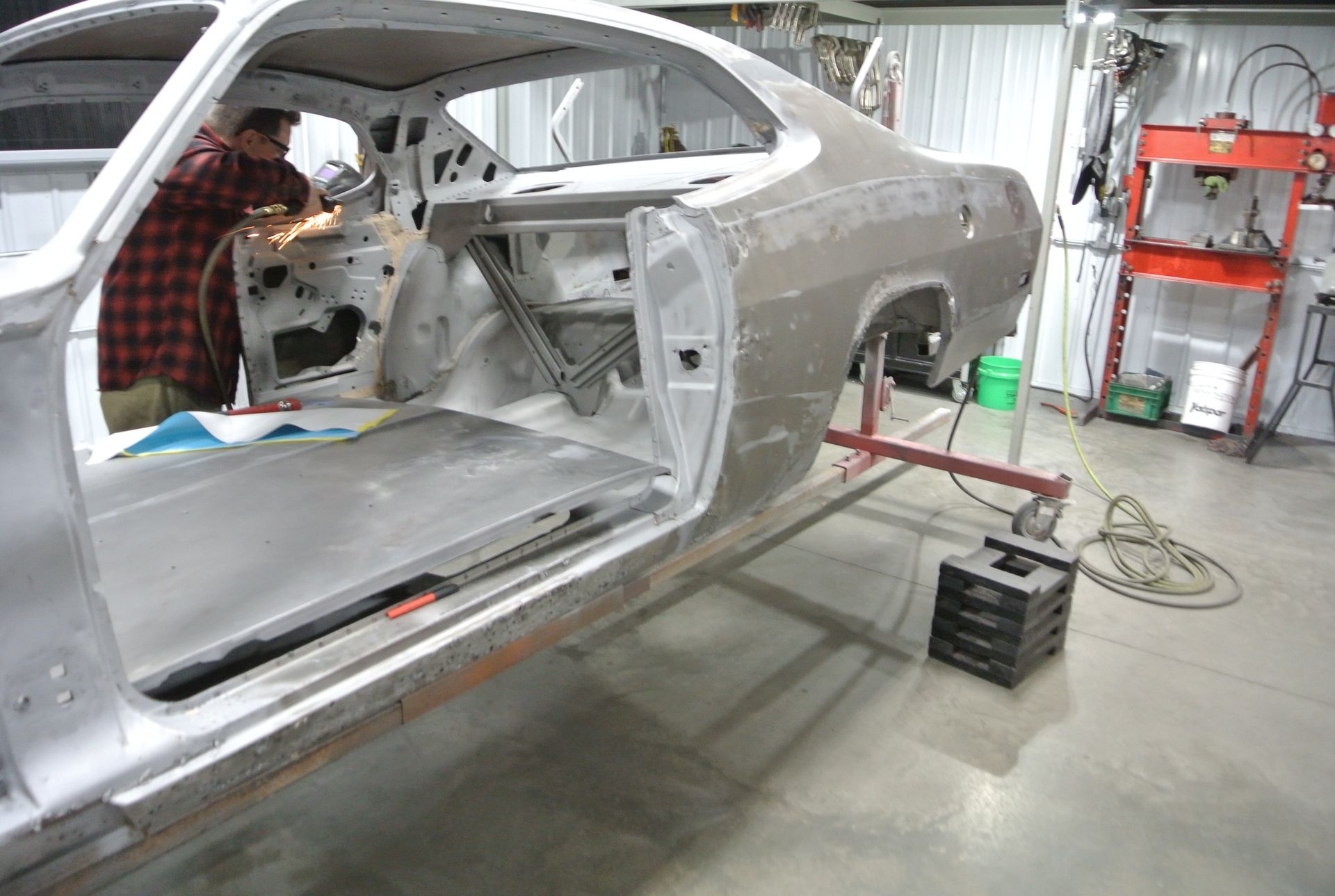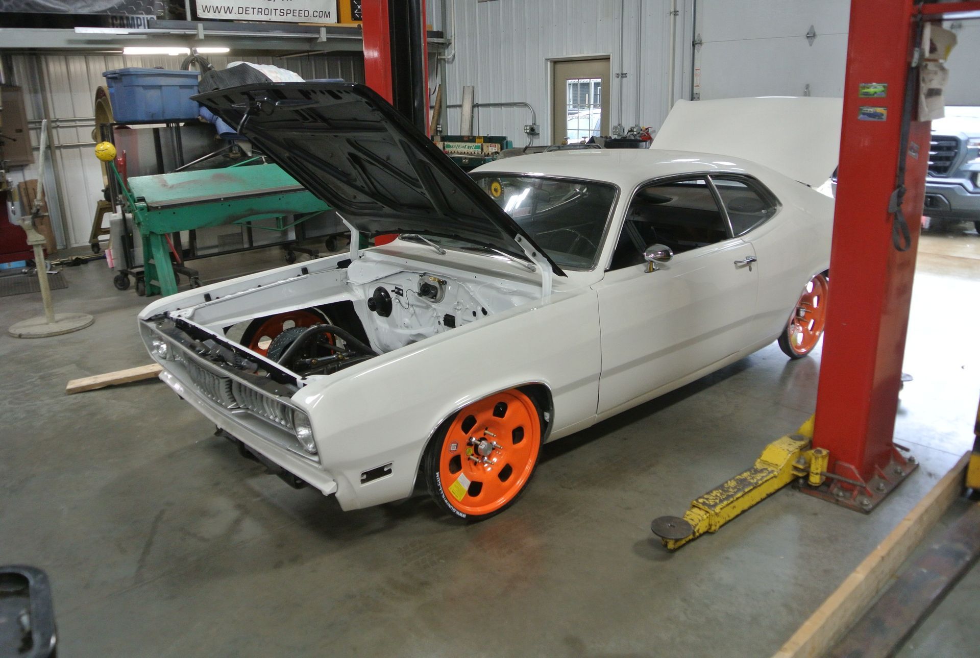 Build a street performance monster. Getting there has been the real challenge. Duster's make great street machines and this was the intent when Jordon brought his '71 to us. Recently painted and looking good, the plan was to swap in a Hellcat drivetrain, fortify the chassis and go, go, go. But when we looked deeper into the car, what we saw was no, no, no. Yes, the paint looked good, but the sheet metal looked bad as did parts of the frame. No way was what we were brought going to handle the Hellcat. So a new version of the old plan was hatched. It was still going to be one bad-ass street machine, but now it was going to be built from the bottom up, inside and out with the looks and the structural integrity to match.