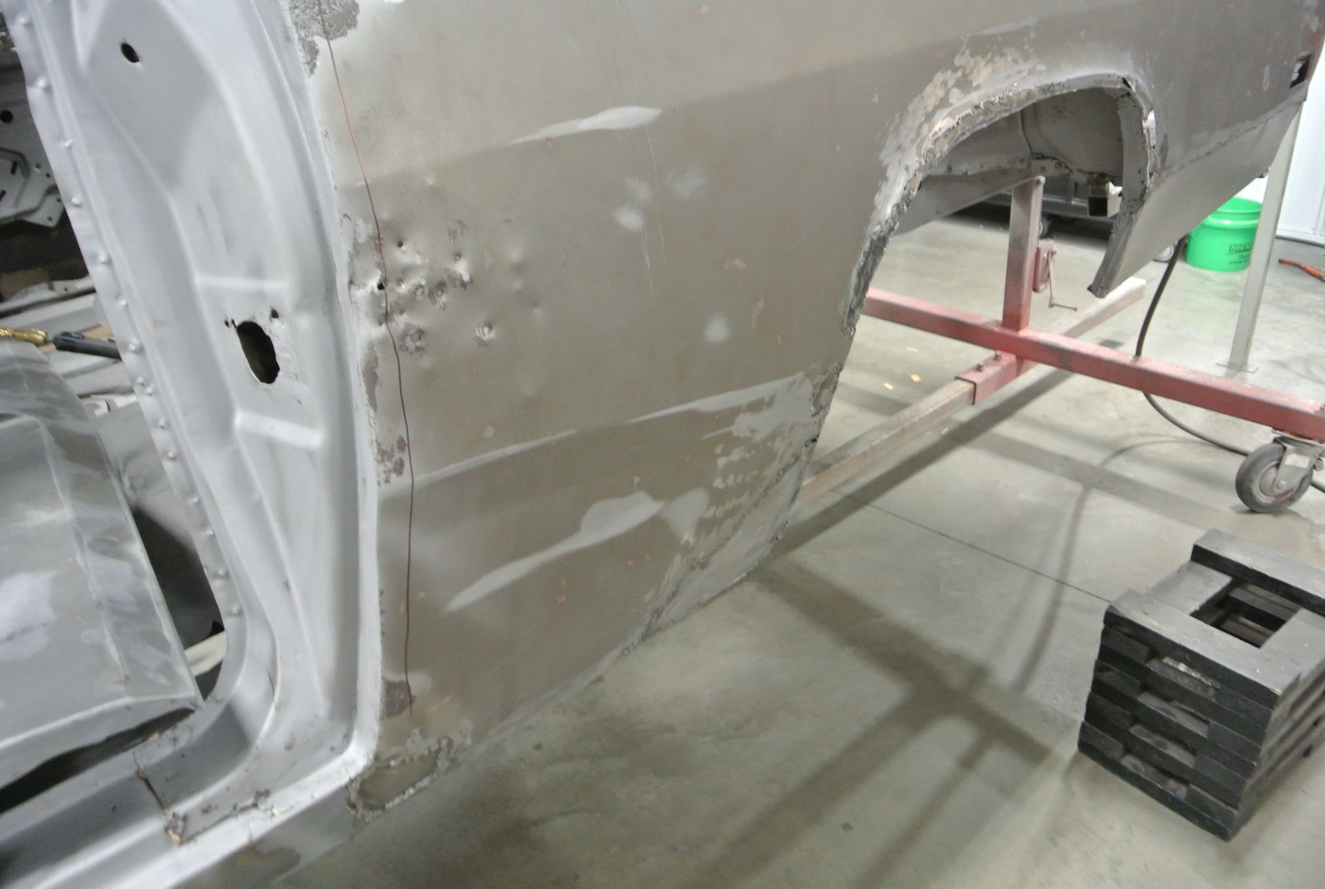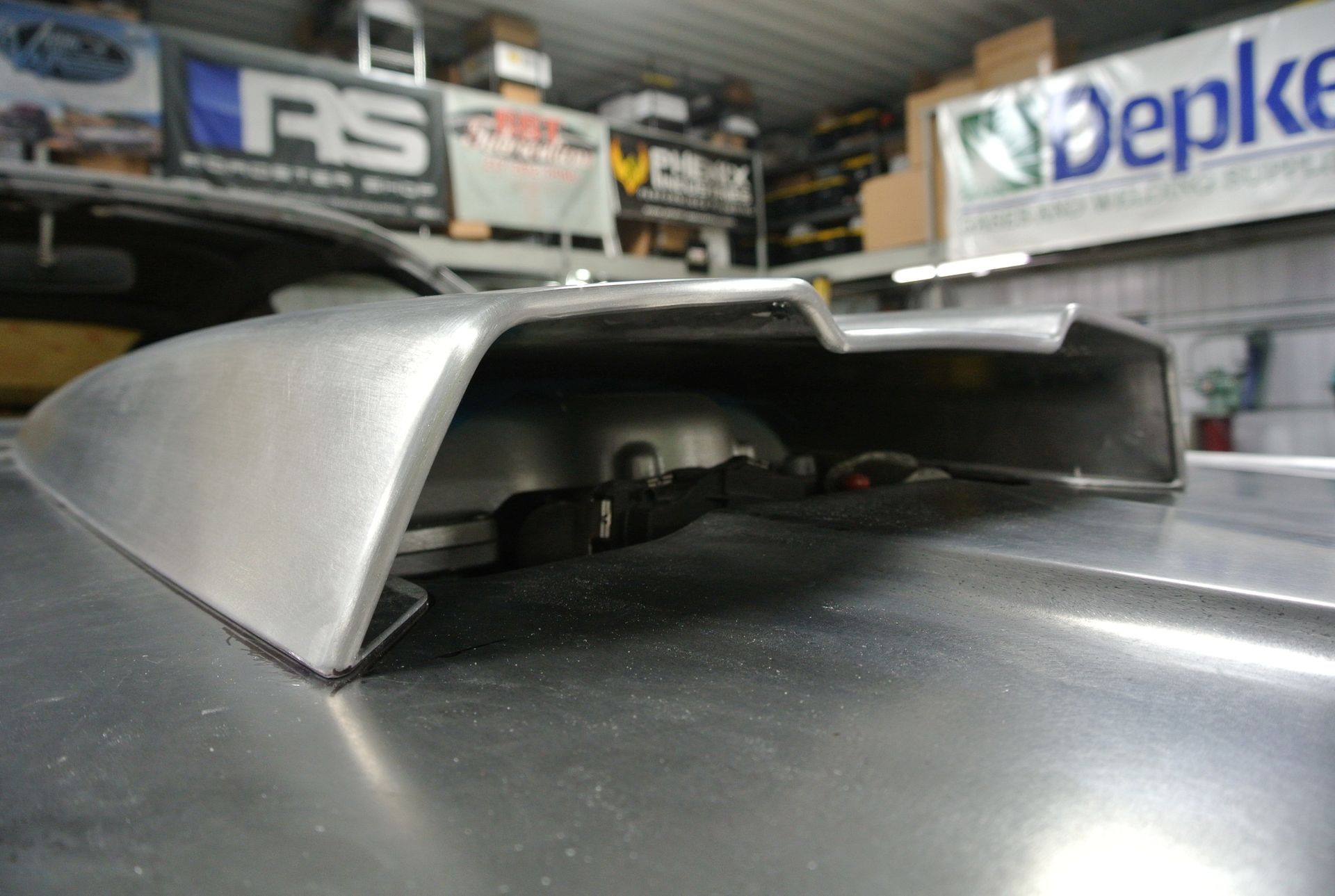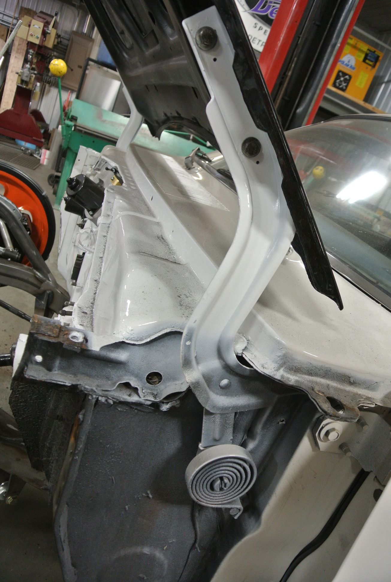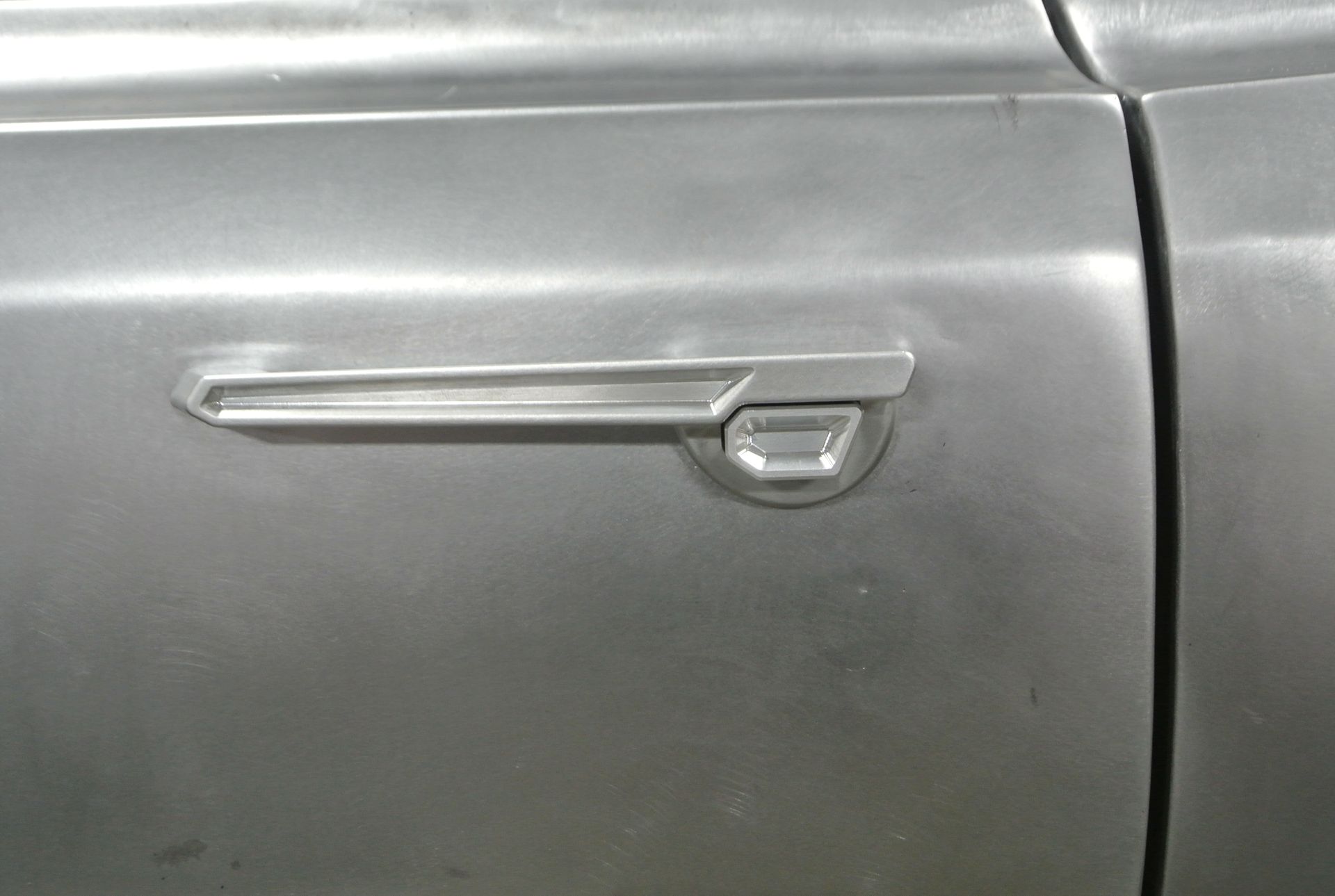 Obviously, a Hellcat motor is going in as is a Bowler T-56 transmission. The body will now ride on a custom-built full frame which will feature HRE wheels, 18" in front, 19" in back and hiding 14" 6 piston Baer brakes inside. Moving inside, the interior will have seats from a C6 'Vette that have been stripped and recontoured to fit, along with a custom-built rear seat to match. It's all getting covered in dark blue leather which will contrast beautifully with the crisp, clean, ultra-white paint that the body will wear. Other body mods include the bumpers being pulled in and our very own designed and machined outside mirrors and door handles from IntekOtto.