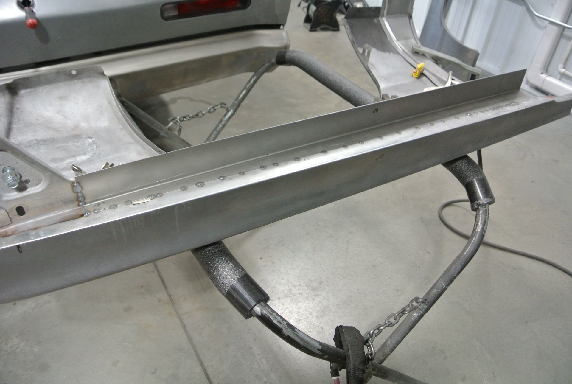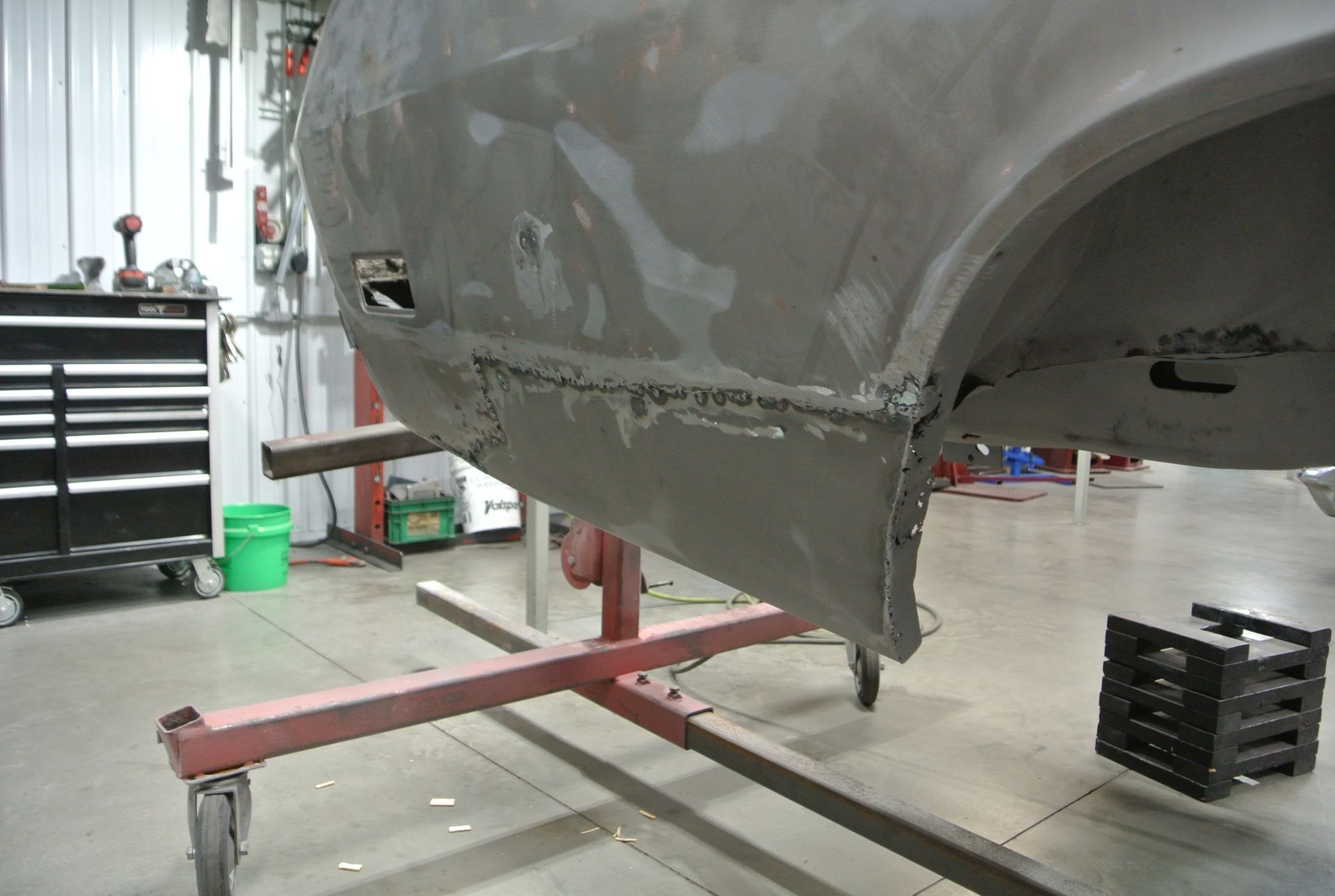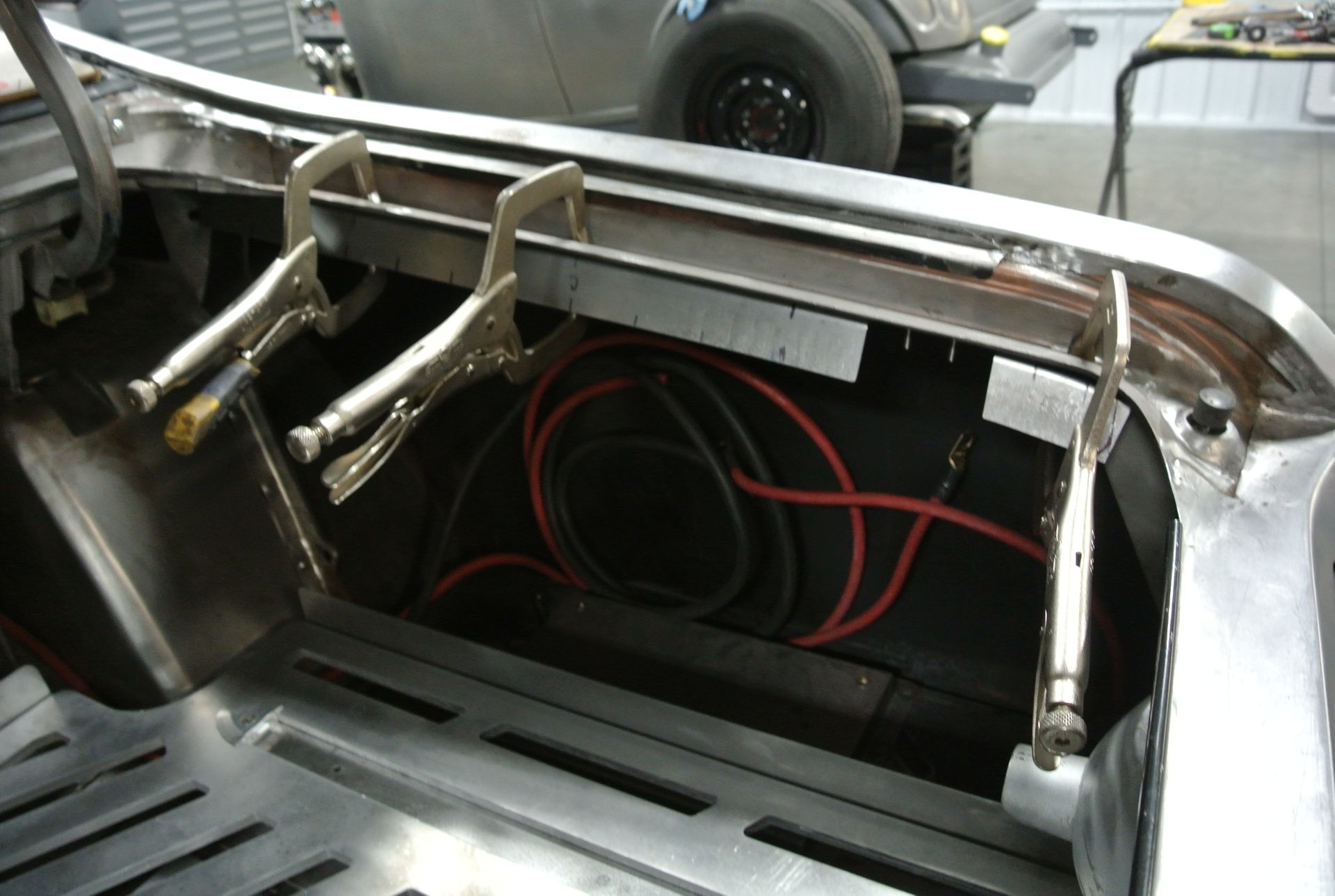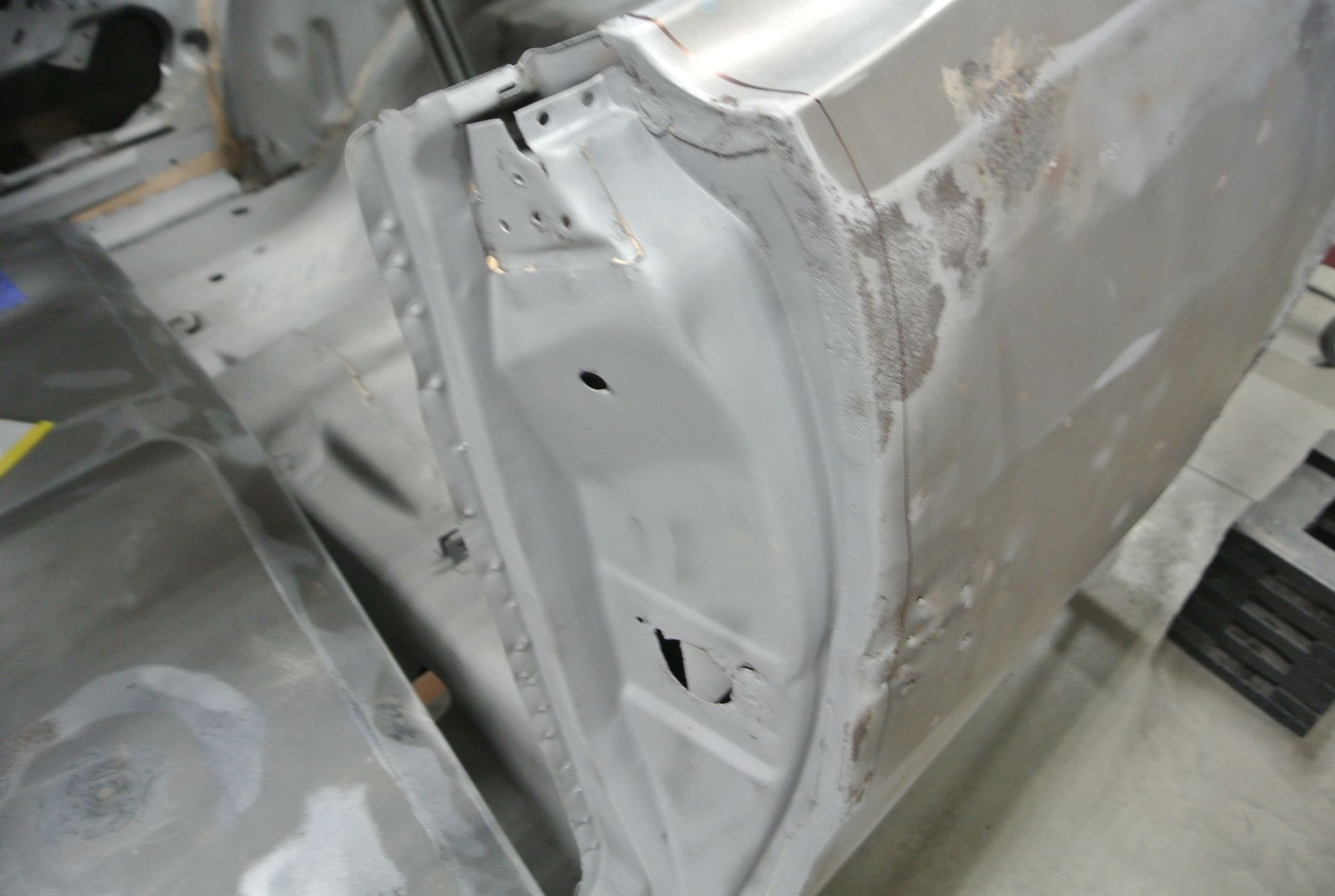 Obviously, a Hellcat motor is going in as is a Bowler T-56 transmission. The body will now ride on a custom-built full frame which will feature HRE wheels, 18" in front, 19" in back and hiding 14" 6 piston Baer brakes inside. Moving inside, the interior will have seats from a C6 'Vette that have been stripped and recontoured to fit, along with a custom-built rear seat to match. It's all getting covered in dark blue leather which will contrast beautifully with the crisp, clean, ultra-white paint that the body will wear. Other body mods include the bumpers being pulled in and our very own designed and machined outside mirrors and door handles from IntekOtto.