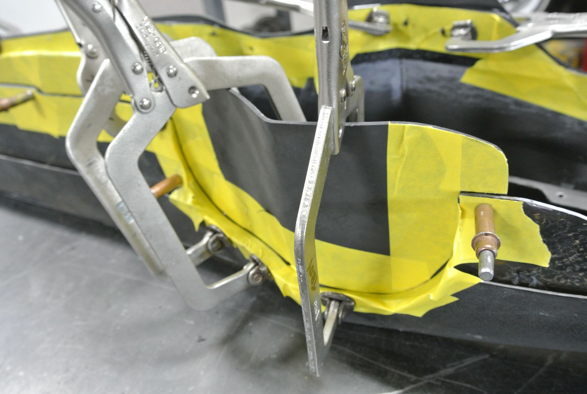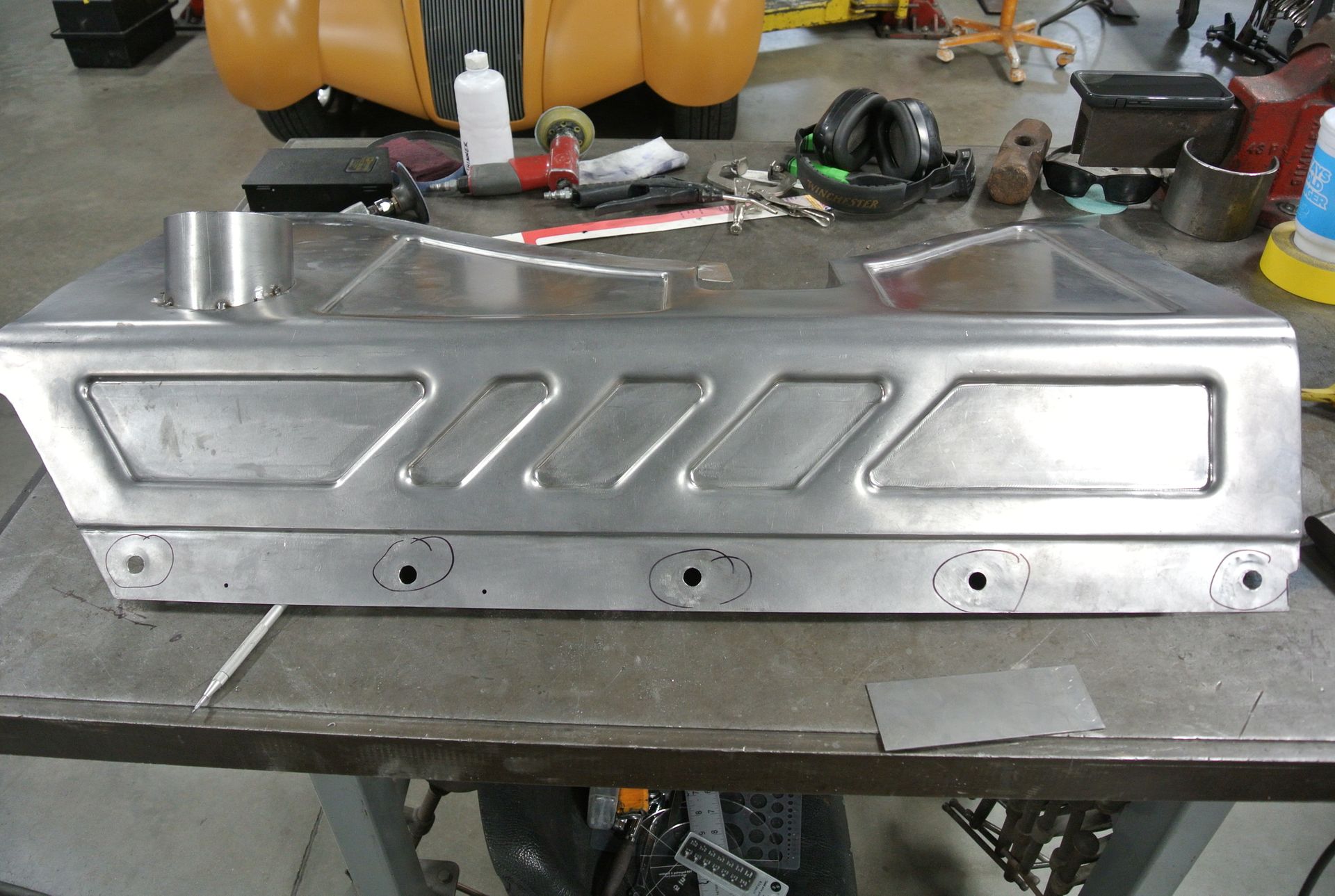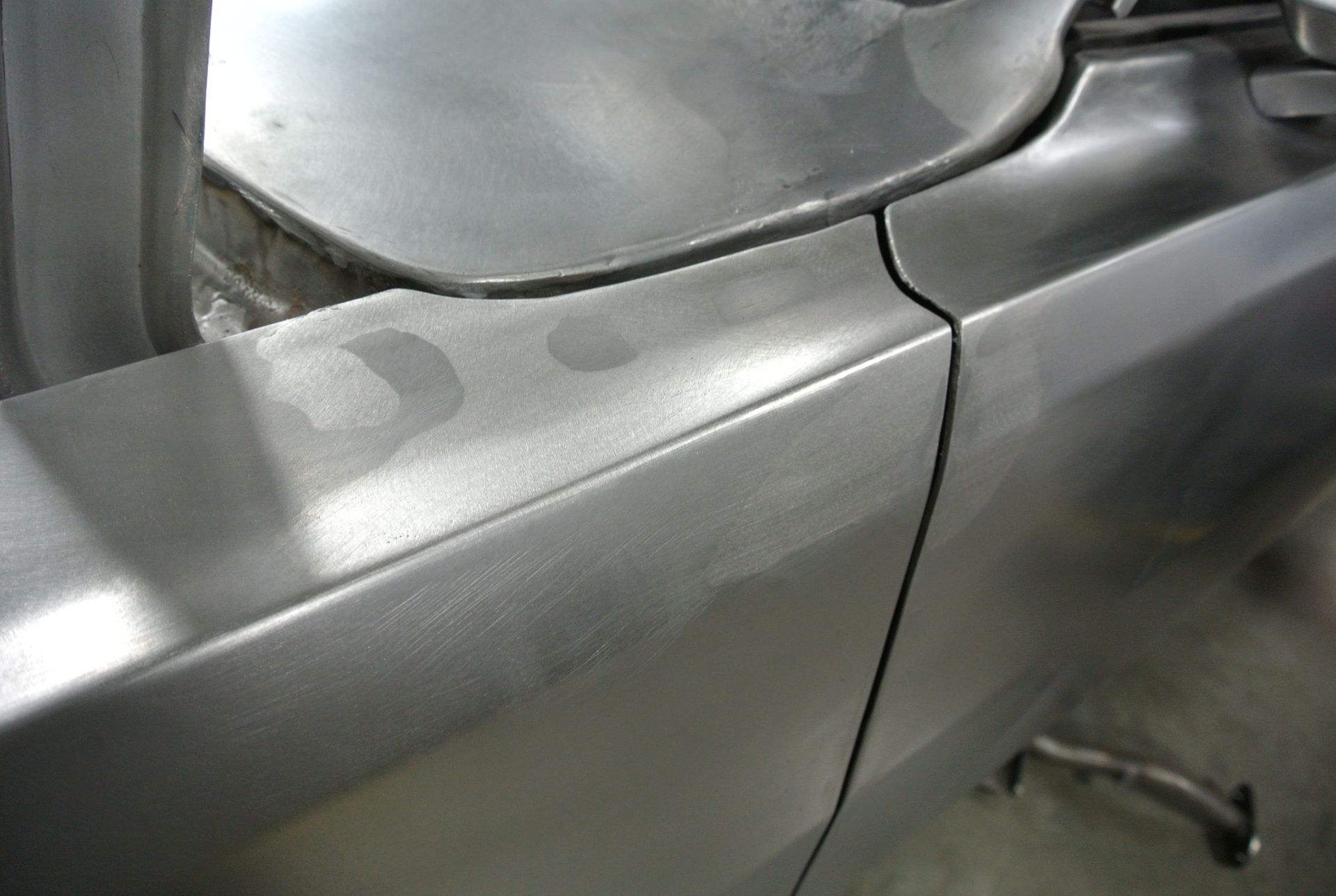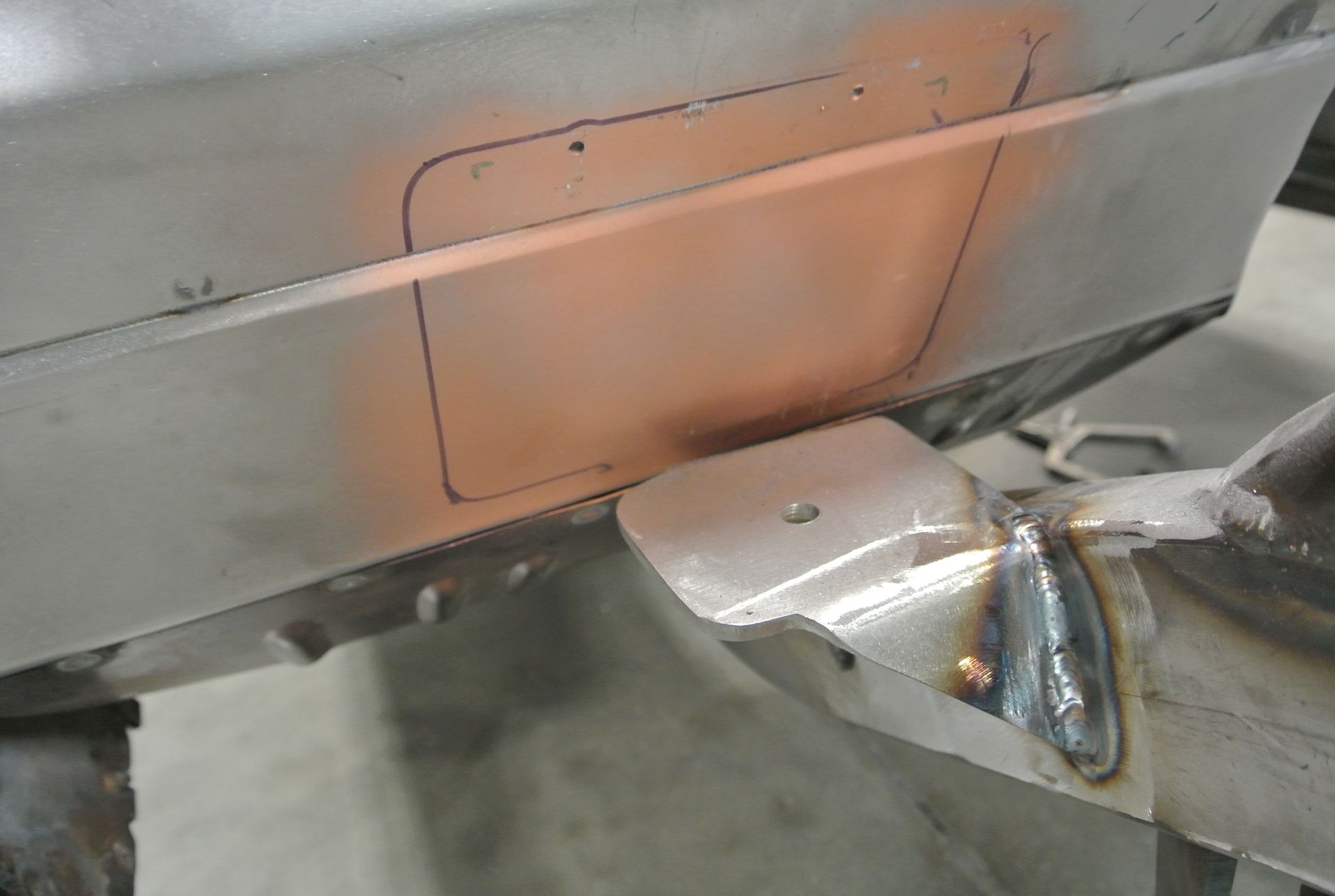 Obviously, a Hellcat motor is going in as is a Bowler T-56 transmission. The body will now ride on a custom-built full frame which will feature HRE wheels, 18" in front, 19" in back and hiding 14" 6 piston Baer brakes inside. Moving inside, the interior will have seats from a C6 'Vette that have been stripped and recontoured to fit, along with a custom-built rear seat to match. It's all getting covered in dark blue leather which will contrast beautifully with the crisp, clean, ultra-white paint that the body will wear. Other body mods include the bumpers being pulled in and our very own designed and machined outside mirrors and door handles from IntekOtto.