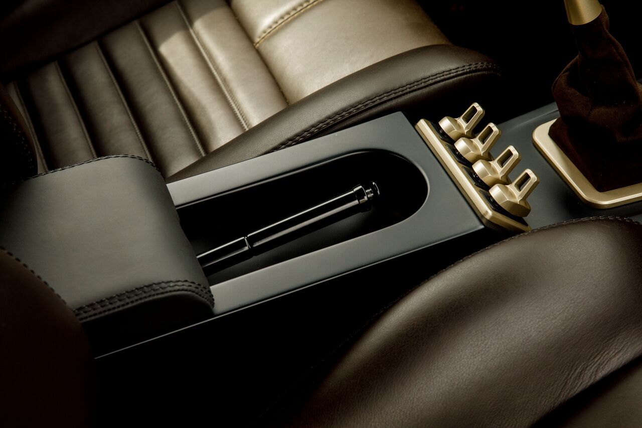 Five hundred and seventy two cubic inches provides a great focal point for a project so we started there. The 750 horsepower big block was matched with a DSE suspension, massive BREMBO Carbon Fiber brakes and custom Boze wheels. While the rest of the underpinnings were addressed accordingly, the T56 was covered with a hand-built trans and drive line tunnel to go along with the rest of the Camaro's hand-formed interior panels, custom designed seats and custom mocha-colored leather upholstery which is set off with golden-bronzed interior trim accents that echo the colors of the wheel faces.