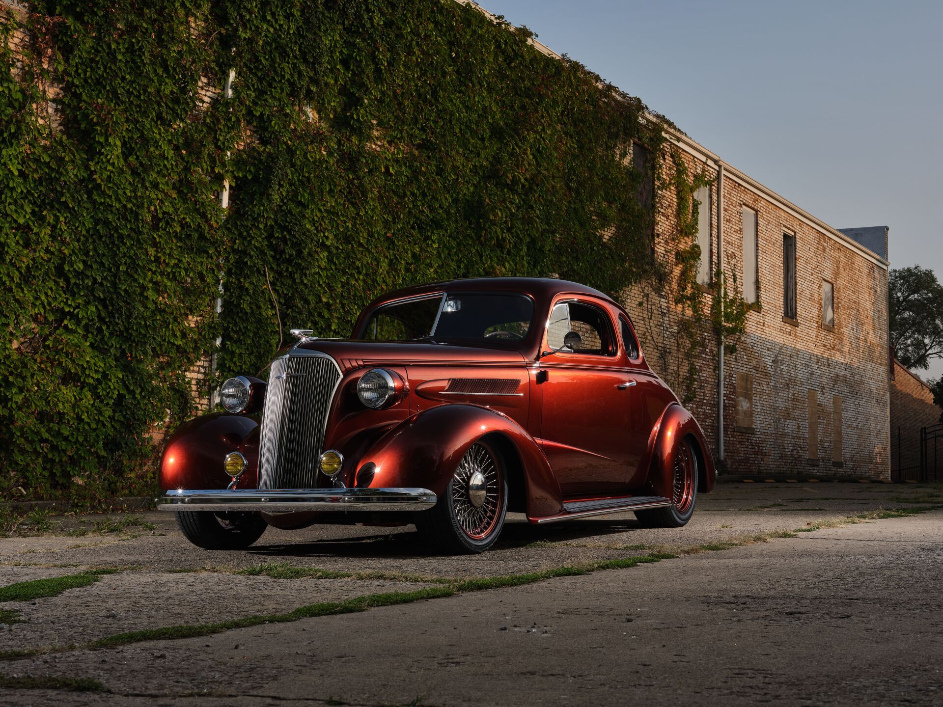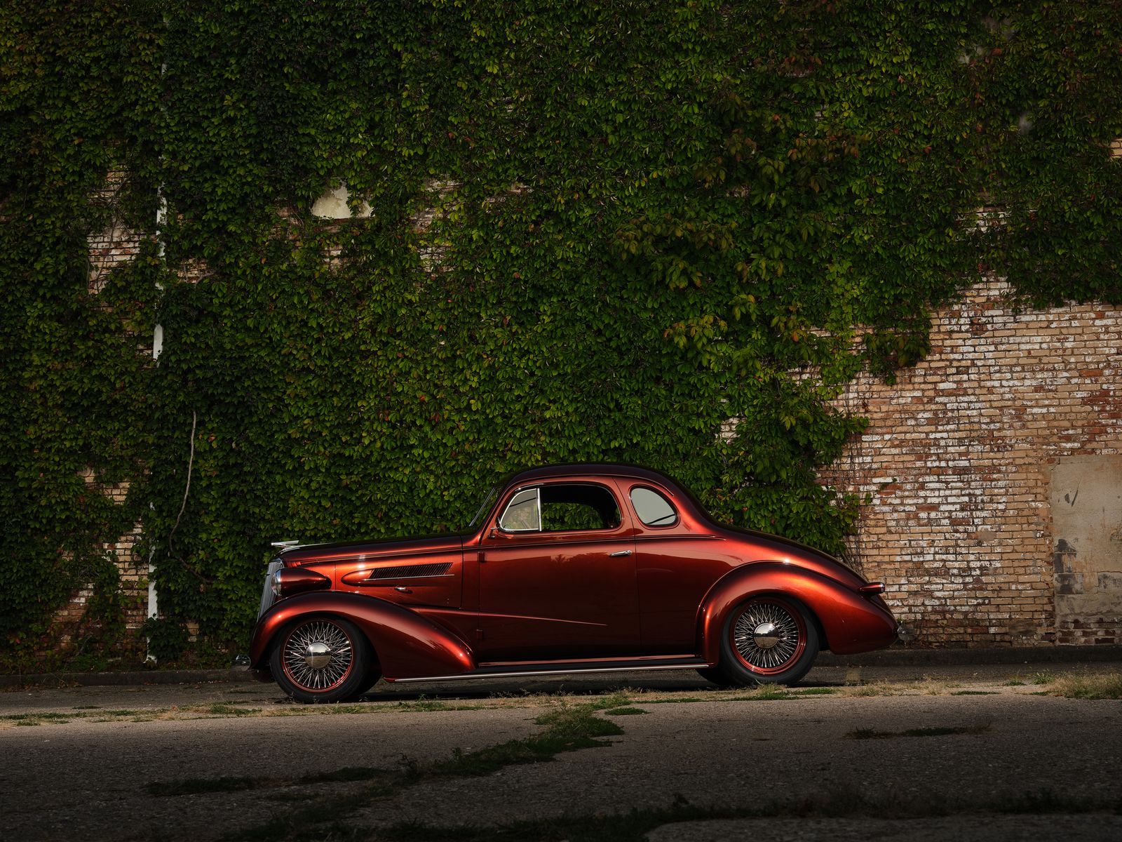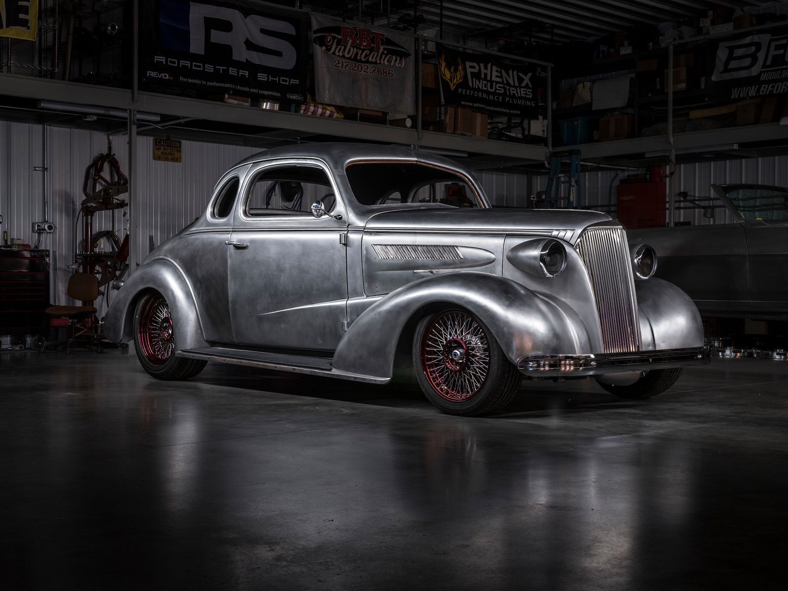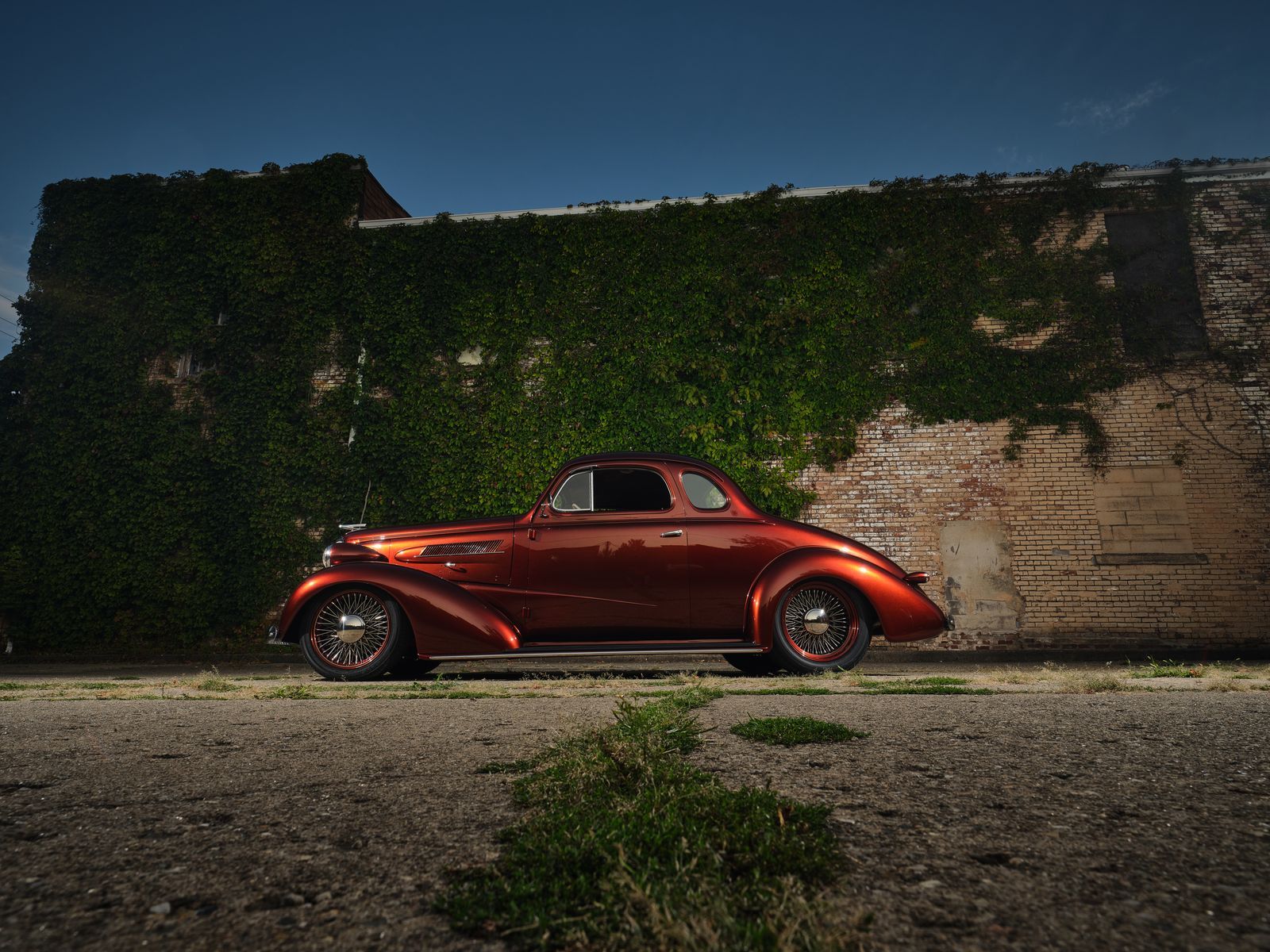 Hammered. Welded. Smoothed. Tucked. Machined. A lot. This '37 features extensive machining due to the high amount of art deco-themed details throughout the car. From it's repurposed heater and delicate interior trim pieces to its elegant hood ornament, waterfall grill and beautiful accent trim, there is an incredible amount of custom fabrication even for the pieces that don't look customized...which is kind of the point of this build. Backing up its classically gorgeous lines is an equally classic powertrain, a strong, though not silent, LS engine and trans combo built to move this pre-war, custom classic with the authority and confidence its looks exude.