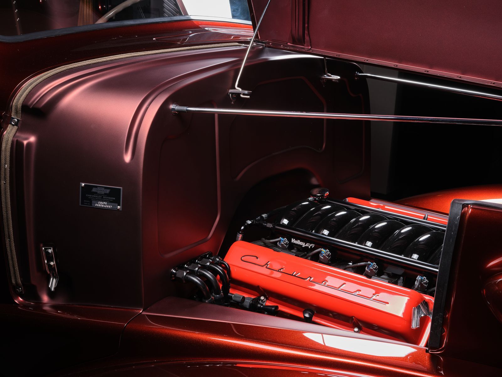Classic hot rods are always fun and challenging to build, and Steve's pegs the needle on both. Designed to pay homage to a "strict" classic hot rod-coupe style, vintage design cues and timeless elements are everywhere. From the vintage looking wire wheels to the art deco theme throughout, it's the details that bring this one together and respect the heritage of the era. It's those same details that set it apart as a thoroughly modern interpretation of the classic, post war hot rod.